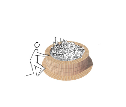 – residential roofs, which are entirely planted with edible vegetation. We also install vegetable garden beds and plant large trees. To enhance the living quality, we place pergolas for shade, which are equipped with solar panels to visibly generate energy.