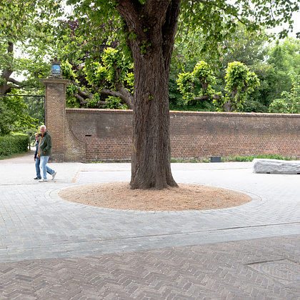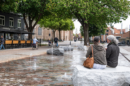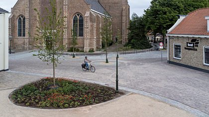 Landscape structure and planting play a leading role in the project. Public planting areas are significantly expanded, strengthening spatial cohesion and climate resilience. The church garden is enriched with abundant perennial planting, enhancing its presence within the square. Throughout the project, sustainability, material reuse and a careful dialogue between heritage and contemporary use form the foundation of the design approach.