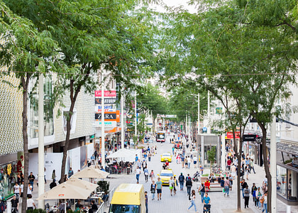 The Mariahilfer Strasse is a fancy, nineteenth-century shopping boulevard in Vienna. In the last decades, it became very heavy with traffic. The City of Vienna decided to transform the street into an inviting, pedestrian-friendly avenue.