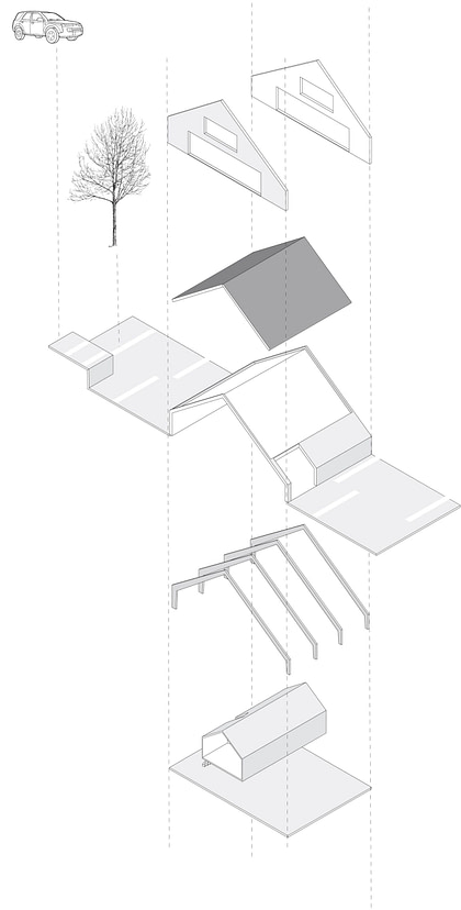 Het bureau ontwierp casco’s met een inhoud variërend van 375 m³ tot 1000 m³, zonder een afgebakende tuin. Als basis voor elke woning is de karakteristieke vormverhouding van hallenboerderijen als uitgangspunt gekozen. Voor de overige onderdelen is vrijelijk geput uit de oude gebruiken van de streek: een wolfseind als onmogelijke zitplaats voor heksen, wisselende gevelhoogten aangepast aan de verschillende boerderijdieren of een weg door de zijkant van de schuur voor laden en lossen. Het meest bijzondere onderdeel, het dak met een verhouding van een kwart tot driekwart deel van de gevel, plooit zich naar het landschap op de locatie en dramatiseert dit. Deze plooiing is tegelijk het erf waar de bewoners vrij spel hebben en diverse functies zijn ondergebracht. De woningen zijn familie van elkaar, maar verschillen onderling.