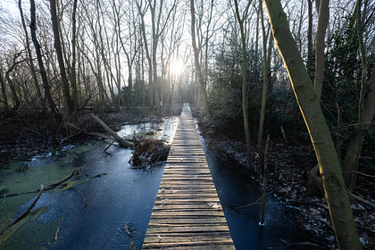 De landgoederen aan de Schie bevatten sporen van 300 jaar tuingeschiedenis: De Tempel heeft een 18e eeuwse basisopzet met classicistische lanen, barokke waterpartijen en een beeldenpark. In de negentiende eeuw zijn daar slingerpaden aan toegevoegd in een pseudo landschapsstijl. Nieuw Rhodenrijs is aangelegd in het begin van de 20ste eeuw in een strakke architectonische tuinstijl. We versterken de beleving van de verschillende historische perioden door beeldbepalende elementen in ere te herstellen. Daarnaast voegen we nieuwe, eigentijdse elementen toe. Een modern vlonderpad van cortenstaal zal de twee landgoederen onderling met elkaar verbinden. Aan de Schie komt een aanlegsteiger voor recreatievaart met een terras en een paviljoen.