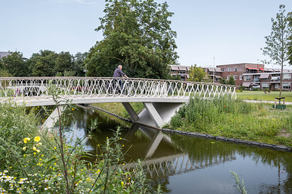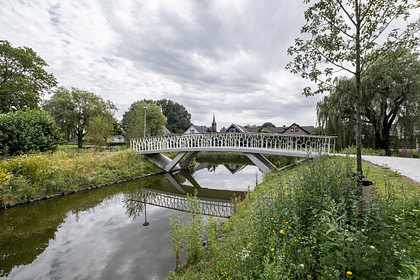 De betonnen bruggen zijn zo vormgegeven dat ze, gezien vanuit het lint van de Dorpstraat en de St. Jan de Doper Kerk, zich opeenvolgend openen naar de omgeving waardoor het zicht steeds weidser wordt.