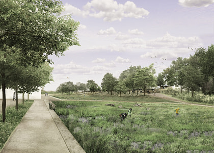 Het Buiksloterdijkpark vormt de ontbrekende schakel tussen de Waterlandse Zeedijk, tussen Kadoelerscheg en IJ-oevers, tussen Tuindorp en NDSM en tussen Buiksloterbreek en Buiksloterham. Het park vervult zo een verbindende functie op zowel de schaal van Amsterdam Noord als op de schaal van de nieuwe wijk en verbindt daarmee ook metropolitane en lokale behoeftes. Het ontwerp richt zich op het scheppen van een verbindend park: een groen-blauwe ader die zowel de hydrologische buffer van de buurt is als een oase van biodiversiteit. Het nieuwe waterpark langs de voet van de dijk dooradert de nieuwe wijk en verbindt zo ‘t Landje, de Buiksloterbreek, het Marjoleinterrein en de Buiksloterham met elkaar. Groene doorzichten, integratie van nieuwe routes, sport- en speelfuncties en ontmoetingsplekken maken dat dit een plek van iedereen wordt.