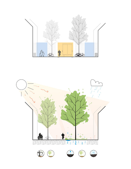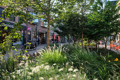 Het introduceren van royale plantvakken creëert een levendig groen straatbeeld, waardoor de Laat een unieke identiteit krijgt ten opzichte van andere straten in het stadscentrum. Bovendien spelen de verdiepte plantvakken een belangrijke rol bij het tegengaan van overstromingen tijdens zware regenval. De ruime plankvakken, aangeplant met bomen en bloeiende onderbeplanting, wisselen af met open ruimtes, waardoor er plekken ontstaan voor sociale interactie en ontspanning. Gelegen aan de noordzijde van de straat, bieden terrassen en zitplaatsen zonnige plekken om te verblijven. Tegelijkertijd zorgen meer dan 60 nieuw geplante bomen voor schaduwrijke plekken en verkoeling. De twee ingangen van de Laat worden geaccentueerd met opvallende waterelementen.