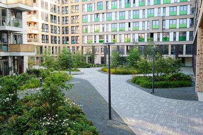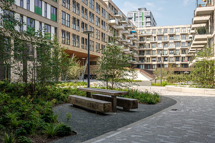 Lieven is een stedelijke campus in het westen van Amsterdam met huisvesting voor starters en studenten, evenals een café, wasserette en een fitnessruimte. Bureau B+B was verantwoordelijk voor het ontwerp van de openbare ruimte, de dak- en binnentuinen en de gemeenschappelijke tuinen met wadi’s voor duurzaam stedelijk waterbeheer.