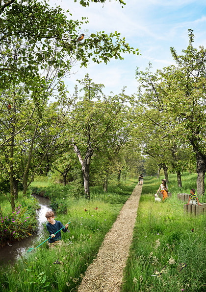 In samenwerking met onze Tsjechische partners Gogolak Grasse werkte Bureau B+B aan de grootschalige transformatie van het rivierdal rondom de samenvloeiing van de rivieren Berounka en Moldau ten zuiden van Praag. In het masterplan voor landschapspark Soutok vormt de waterbergende opgave de basis voor een grootschalige gebiedstransformatie. Het monotoom en intensief agrarisch gebied wordt getransformeerd naar een gevarieerd landschapspark voor de bewoners van omringende dorpen en steden. Dit park draagt daarnaast bij aan een nieuw evenwichtig landschappelijk systeem, waarbij de lokale hydrologische en geomorfologische karakteristieken het landgebruik sturen.